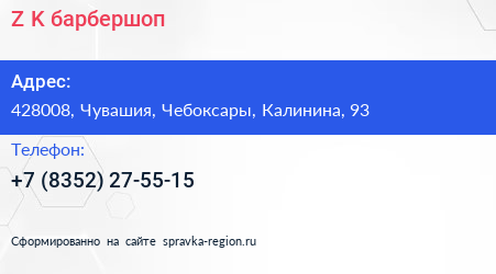 Z&K, барбершоп по адресу 428008, Чувашия, Чебоксары, Калинина, 93 в дальнейшем Организация, размещена в следующих категориях: