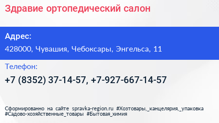 Здравие, ортопедический салон по адресу 428000, Чувашия, Чебоксары, Энгельса, 11 в дальнейшем Организация, размещена в следующих категориях: