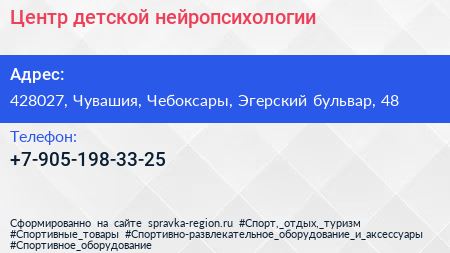 Центр детской нейропсихологии по адресу 428027, Чувашия, Чебоксары, Эгерский бульвар, 48 в дальнейшем Организация, размещена в следующих категориях: