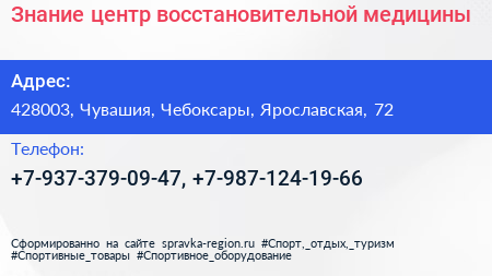 Знание, центр восстановительной медицины по адресу 428003, Чувашия, Чебоксары, Ярославская, 72 в дальнейшем Организация, размещена в следующих категориях: