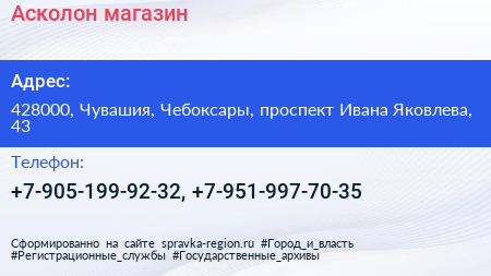 Асколон, магазин по адресу 428000, Чувашия, Чебоксары, проспект Ивана Яковлева, 43 в дальнейшем Организация, размещена в следующих категориях: