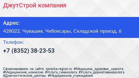 ДжутСтрой, компания по адресу 428022, Чувашия, Чебоксары, Складской проезд, 6 в дальнейшем Организация, размещена в следующих категориях: