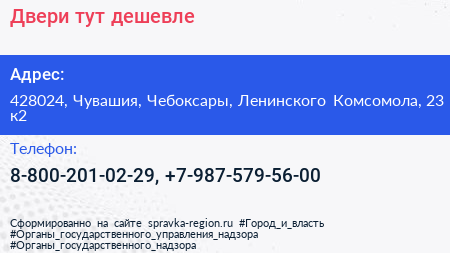 Двери тут дешевле по адресу 428024, Чувашия, Чебоксары, Ленинского Комсомола, 23 к2 в дальнейшем Организация, размещена в следующих категориях: