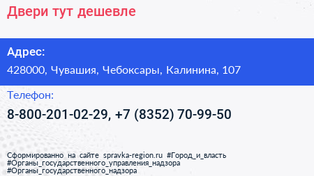 Двери тут дешевле по адресу 428000, Чувашия, Чебоксары, Калинина, 107 в дальнейшем Организация, размещена в следующих категориях: