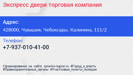 Экспресс двери, торговая компания по адресу 428000, Чувашия, Чебоксары, Калинина, 111/2 в дальнейшем Организация, размещена в следующих категориях:
