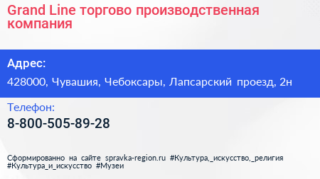 Grand Line, торгово-производственная компания по адресу 428000, Чувашия, Чебоксары, Лапсарский проезд, 2н в дальнейшем Организация, размещена в следующих категориях: