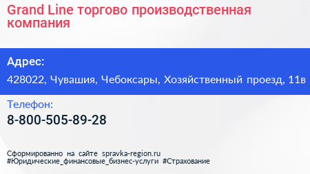 Grand Line, торгово-производственная компания по адресу 428022, Чувашия, Чебоксары, Хозяйственный проезд, 11в в дальнейшем Организация, размещена в следующих категориях: