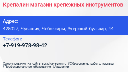 Крепэлин, магазин крепежных инструментов по адресу 428027, Чувашия, Чебоксары, Эгерский бульвар, 44 в дальнейшем Организация, размещена в следующих категориях: