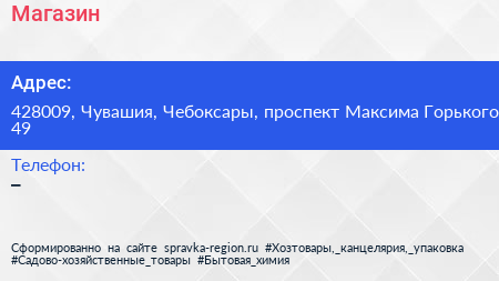 Магазин по адресу 428009, Чувашия, Чебоксары, проспект Максима Горького, 49 в дальнейшем Организация, размещена в следующих категориях: