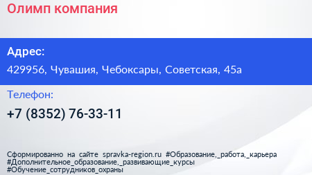 Олимп, компания по адресу 429956, Чувашия, Чебоксары, Советская, 45а в дальнейшем Организация, размещена в следующих категориях: