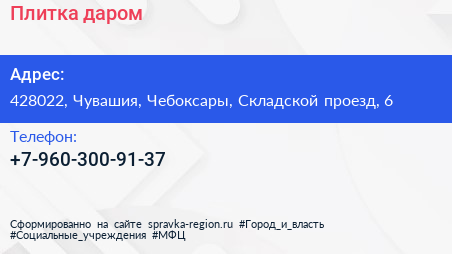 Плитка даром по адресу 428022, Чувашия, Чебоксары, Складской проезд, 6 в дальнейшем Организация, размещена в следующих категориях: