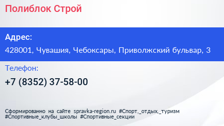 Полиблок-Строй по адресу 428001, Чувашия, Чебоксары, Приволжский бульвар, 3 в дальнейшем Организация, размещена в следующих категориях: