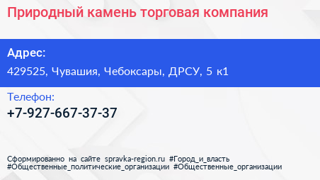 Природный камень, торговая компания по адресу 429525, Чувашия, Чебоксары, ДРСУ, 5 к1 в дальнейшем Организация, размещена в следующих категориях: