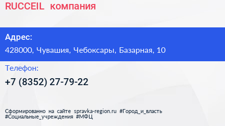 RUCCEIL+, компания по адресу 428000, Чувашия, Чебоксары, Базарная, 10 в дальнейшем Организация, размещена в следующих категориях: