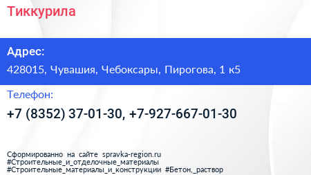 Тиккурила по адресу 428015, Чувашия, Чебоксары, Пирогова, 1 к5 в дальнейшем Организация, размещена в следующих категориях: