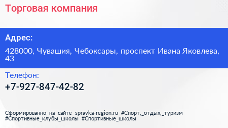 Торговая компания по адресу 428000, Чувашия, Чебоксары, проспект Ивана Яковлева, 43 в дальнейшем Организация, размещена в следующих категориях: