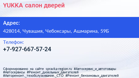 YUKKA, салон дверей по адресу 428014, Чувашия, Чебоксары, Ашмарина, 59Б в дальнейшем Организация, размещена в следующих категориях: