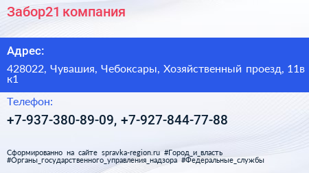 Забор21, компания по адресу 428022, Чувашия, Чебоксары, Хозяйственный проезд, 11в к1 в дальнейшем Организация, размещена в следующих категориях: