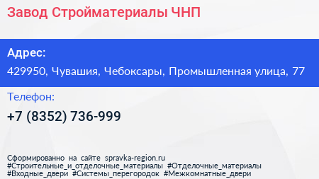 Завод Стройматериалы-ЧНП по адресу 429950, Чувашия, Чебоксары, Промышленная улица, 77 в дальнейшем Организация, размещена в следующих категориях: