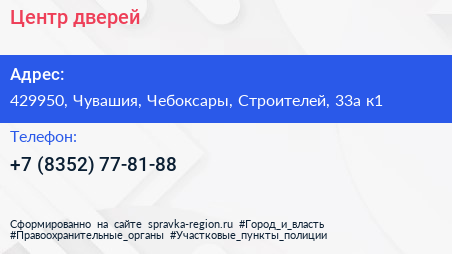 Центр дверей по адресу 429950, Чувашия, Чебоксары, Строителей, 33а к1 в дальнейшем Организация, размещена в следующих категориях: