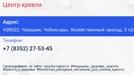 Центр кровли по адресу 428022, Чувашия, Чебоксары, Хозяйственный проезд, 3 к2 в дальнейшем Организация, размещена в следующих категориях: