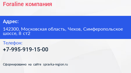 Foraline, компания по адресу 142300, Московская область, Чехов, Симферопольское шоссе, 8 ст2 в дальнейшем Организация, размещена в следующих категориях: