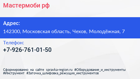 Мастермоби.рф по адресу 142300, Московская область, Чехов, Молодёжная, 7 в дальнейшем Организация, размещена в следующих категориях: