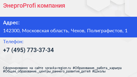 ЭнергоProfi, компания по адресу 142300, Московская область, Чехов, Полиграфистов, 1 в дальнейшем Организация, размещена в следующих категориях: