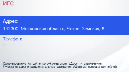 ИГС по адресу 142300, Московская область, Чехов, Земская, 8 в дальнейшем Организация, размещена в следующих категориях: