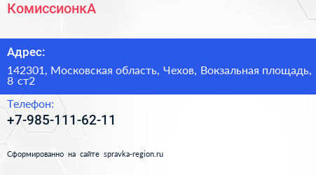 КомиссионкА по адресу 142301, Московская область, Чехов, Вокзальная площадь, 8 ст2 в дальнейшем Организация, размещена в следующих категориях: