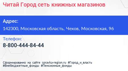 Читай-Город, сеть книжных магазинов по адресу 142300, Московская область, Чехов, Московская, 96 в дальнейшем Организация, размещена в следующих категориях: