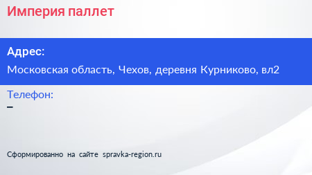 Империя паллет по адресу Московская область, Чехов, деревня Курниково, вл2 в дальнейшем Организация, размещена в следующих категориях: