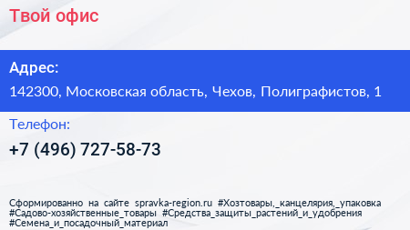 Твой офис по адресу 142300, Московская область, Чехов, Полиграфистов, 1 в дальнейшем Организация, размещена в следующих категориях: