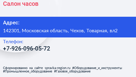 Салон часов по адресу 142301, Московская область, Чехов, Товарная, вл2 в дальнейшем Организация, размещена в следующих категориях: