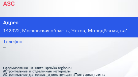 АЗС по адресу 142322, Московская область, Чехов, Молодёжная, вл1 в дальнейшем Организация, размещена в следующих категориях: