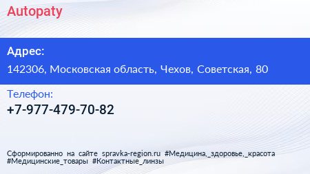 Autopaty по адресу 142306, Московская область, Чехов, Советская, 80 в дальнейшем Организация, размещена в следующих категориях: