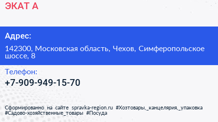 ЭКАТ-А по адресу 142300, Московская область, Чехов, Симферопольское шоссе, 8 в дальнейшем Организация, размещена в следующих категориях: