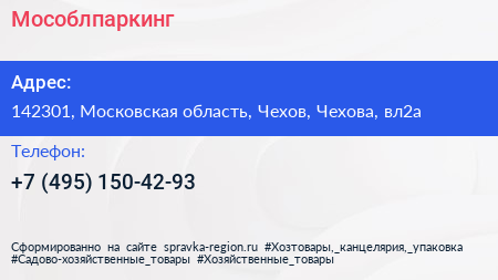 Мособлпаркинг по адресу 142301, Московская область, Чехов, Чехова, вл2а в дальнейшем Организация, размещена в следующих категориях: