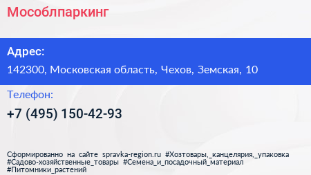 Мособлпаркинг по адресу 142300, Московская область, Чехов, Земская, 10 в дальнейшем Организация, размещена в следующих категориях: