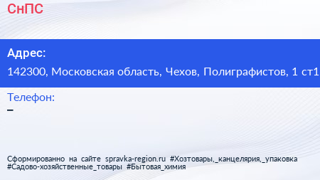 СнПС по адресу 142300, Московская область, Чехов, Полиграфистов, 1 ст1 в дальнейшем Организация, размещена в следующих категориях: