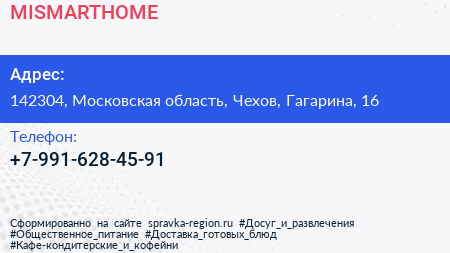 MISMARTHOME по адресу 142304, Московская область, Чехов, Гагарина, 16 в дальнейшем Организация, размещена в следующих категориях: