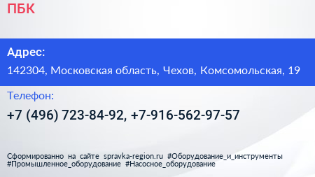 ПБК по адресу 142304, Московская область, Чехов, Комсомольская, 19 в дальнейшем Организация, размещена в следующих категориях: