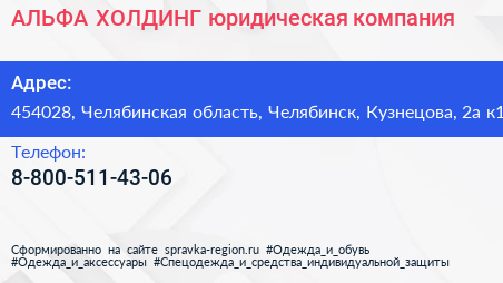 АЛЬФА-ХОЛДИНГ, юридическая компания по адресу 454028, Челябинская область, Челябинск, Кузнецова, 2а к1 в дальнейшем Организация, размещена в следующих категориях: