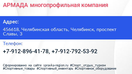 АРМАДА, многопрофильная компания по адресу 456618, Челябинская область, Челябинск, проспект Славы, 3 в дальнейшем Организация, размещена в следующих категориях: