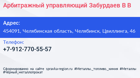 Арбитражный управляющий Забурдаев В.В. по адресу 454091, Челябинская область, Челябинск, Цвиллинга, 46 в дальнейшем Организация, размещена в следующих категориях: