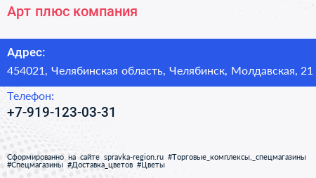 Арт-плюс, компания по адресу 454021, Челябинская область, Челябинск, Молдавская, 21 в дальнейшем Организация, размещена в следующих категориях: