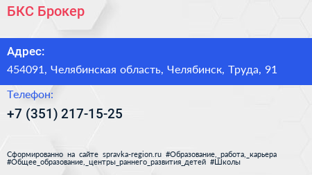 БКС Брокер по адресу 454091, Челябинская область, Челябинск, Труда, 91 в дальнейшем Организация, размещена в следующих категориях: