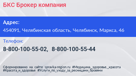 БКС Брокер, компания по адресу 454091, Челябинская область, Челябинск, Маркса, 46 в дальнейшем Организация, размещена в следующих категориях: