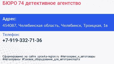 БЮРО 74, детективное агентство по адресу 454087, Челябинская область, Челябинск, Троицкая, 1в в дальнейшем Организация, размещена в следующих категориях: