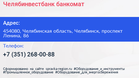 Челябинвестбанк, банкомат по адресу 454080, Челябинская область, Челябинск, проспект Ленина, 86 в дальнейшем Организация, размещена в следующих категориях: